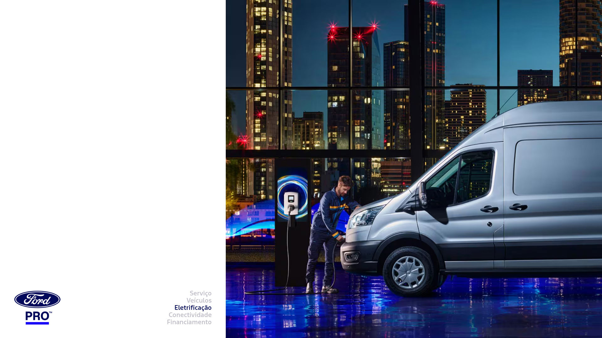 ford e-transit à noite na rua