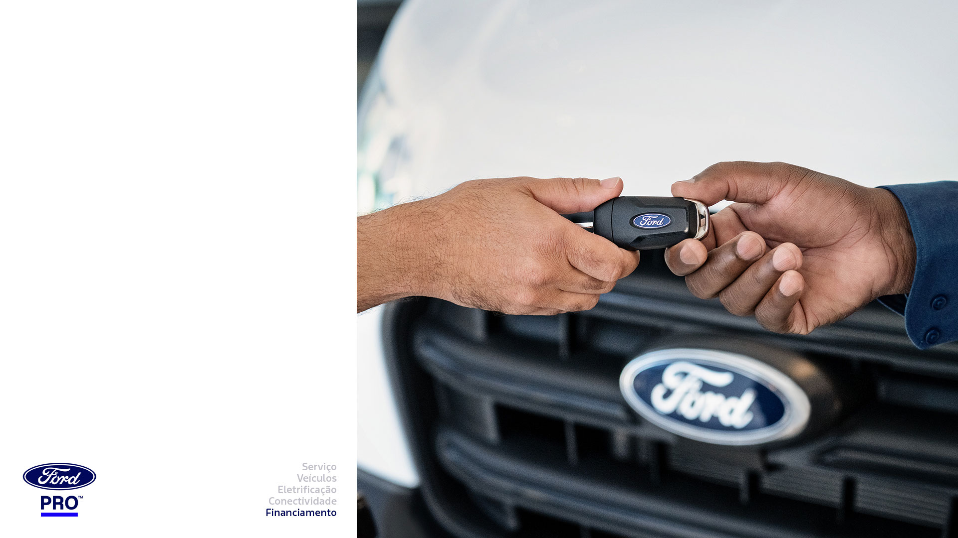 A Ford Pro disponibiliza soluções completas para o cliente comercial, desde opções de financiamentos para a aquisição de veículos e transformações, até planos de assinatura disponíveis do pequeno empresário ao grande frotista. São soluções que se adequam às necessidades de cada cliente, com uma jornada 100% digital.